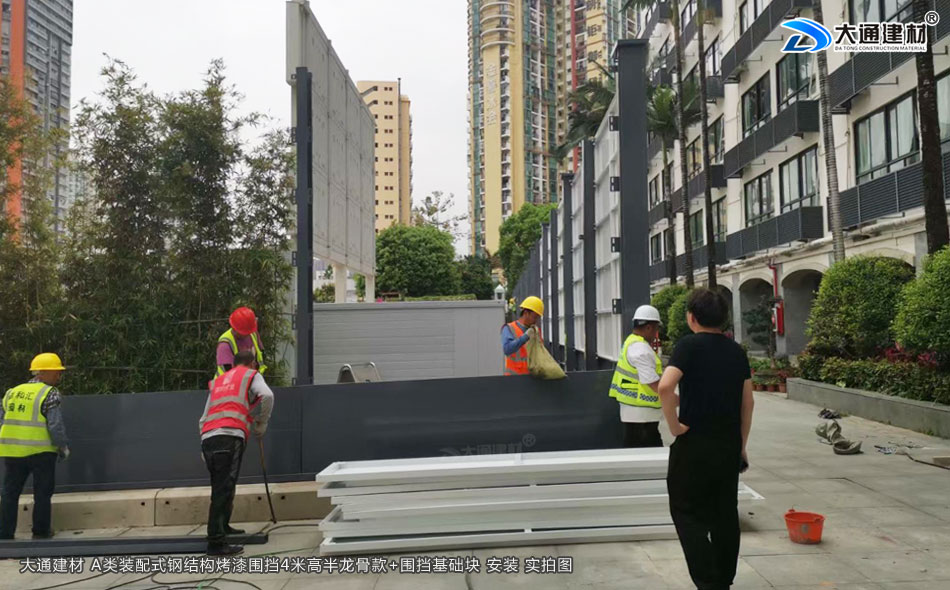 大通建材 A類裝配式鋼結構烤漆圍擋半龍骨4米高定制款+圍擋基礎塊 現場安裝