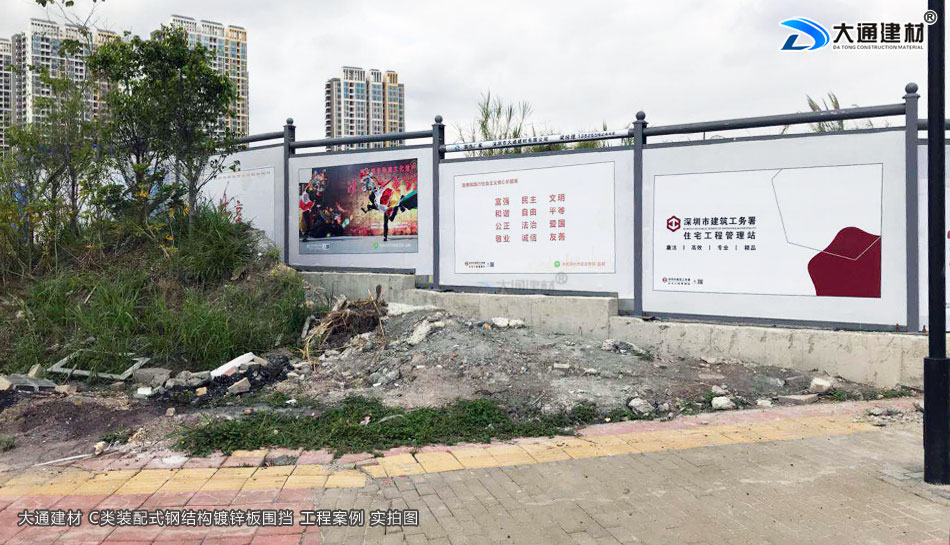 深圳市大通建材有限公司,大格局、通天下! 新型裝配式鋼結構圍擋A款/B款/C款,PVC圍擋,圍擋基礎,工地大門等產品生產廠家電話13826562448