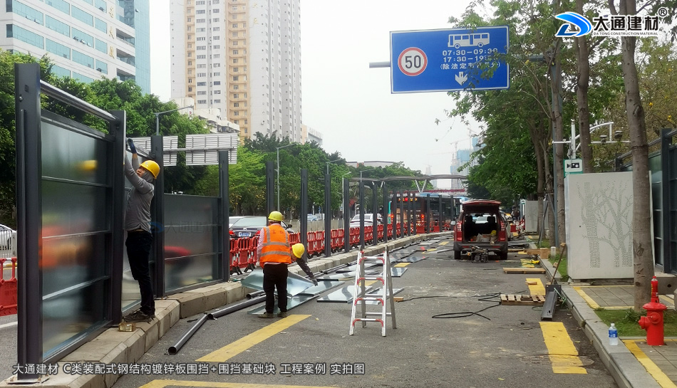 深圳市羅湖區(qū)黃貝街道項目工程使用的是深圳市大通建材提供的C類鍍鋅鋼結(jié)構(gòu)圍擋+圍擋基礎(chǔ)塊,由大通建材公司專業(yè)團(tuán)隊生產(chǎn)-銷售-配送-安裝等服務(wù)