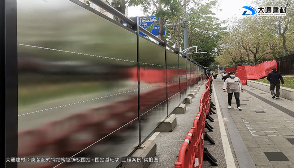 上述圖片展示的是深圳市大通建材C類鍍鋅鋼結(jié)構(gòu)圍擋+圍擋基礎(chǔ)塊的工程案例實拍圖,了解更多“大通圍擋”詳情請致電 13826562448 梁先生