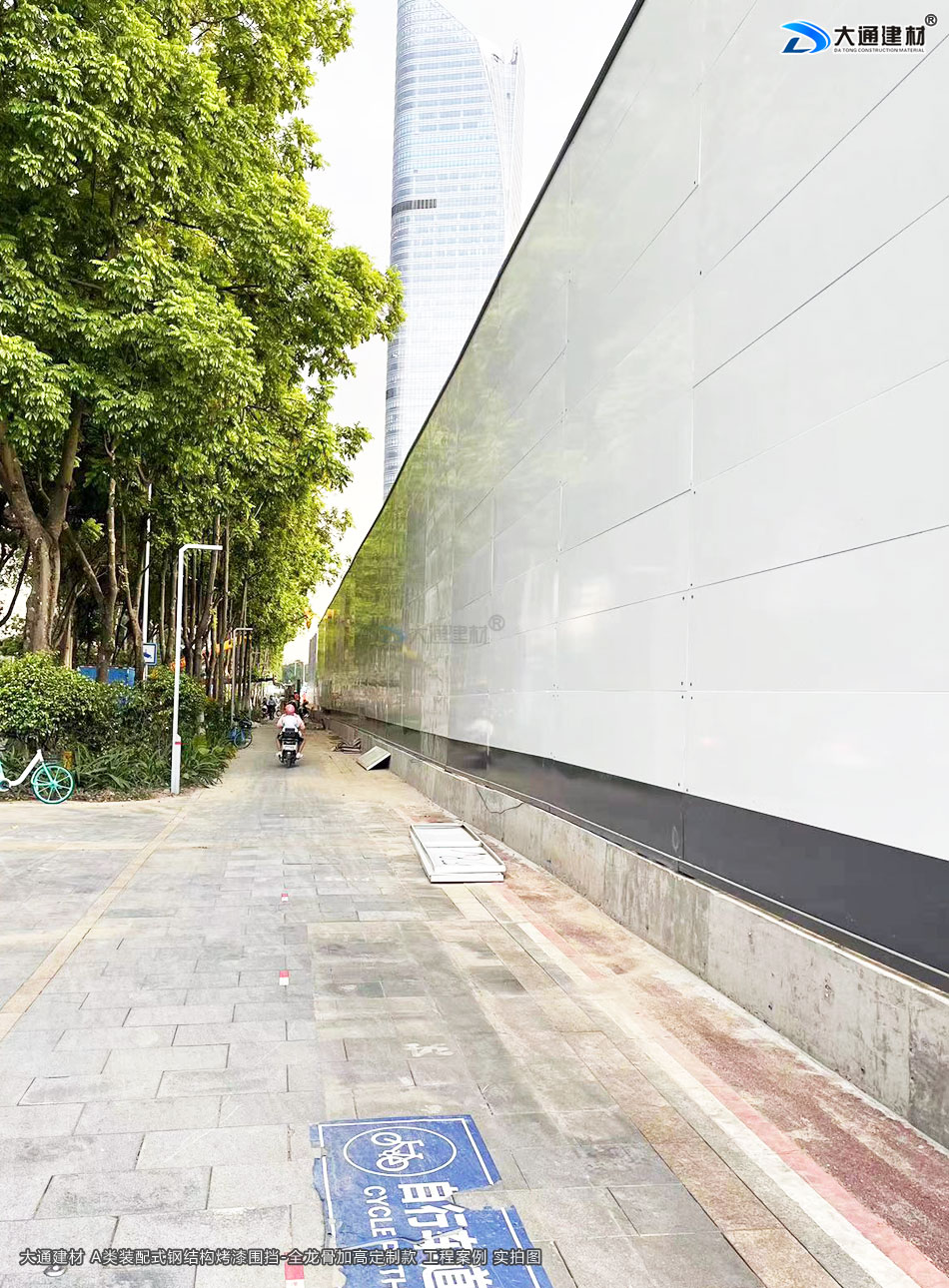 深圳市大通建材生產(chǎn)銷售的A類裝配式烤漆鋼圍擋-全龍骨定制加高款 應(yīng)用于 深圳建設(shè)地產(chǎn)工程項(xiàng)目中