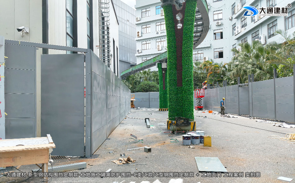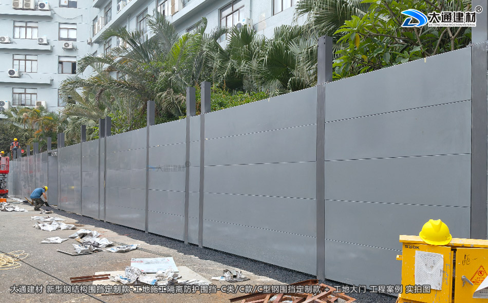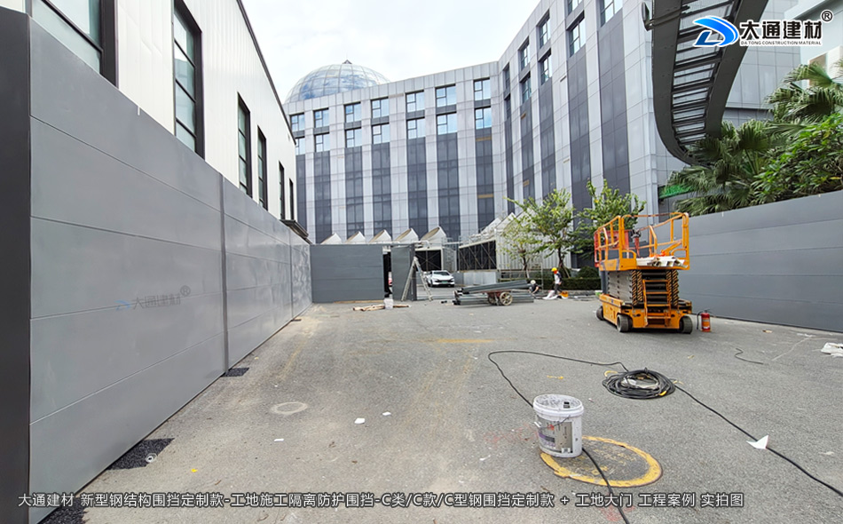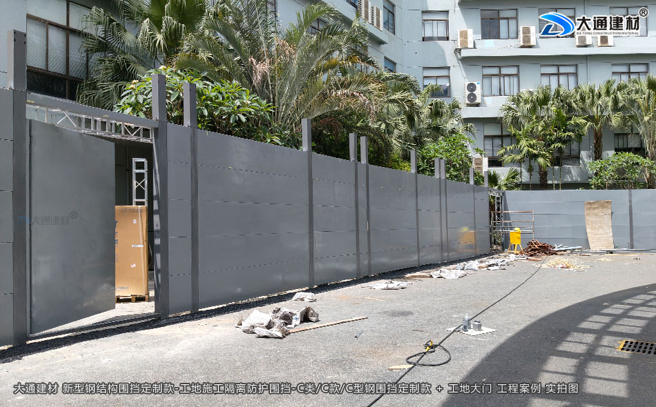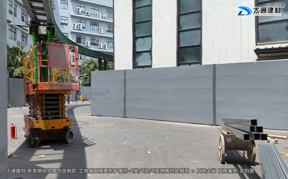 深圳市大通建材C類/C款/C型鋼圍擋生產(chǎn)廠家,大通圍擋可按工地實際情況及需求定制化生產(chǎn),下面展示的是定制款C類/C款/C型鋼圍擋安裝在深圳龍崗比亞迪改造工程的部分實拍圖