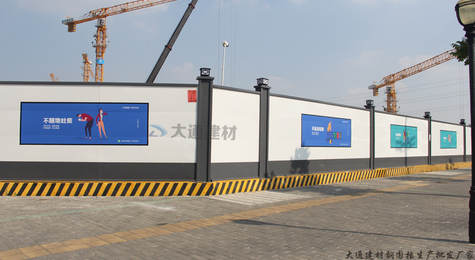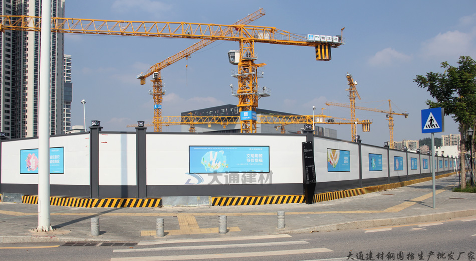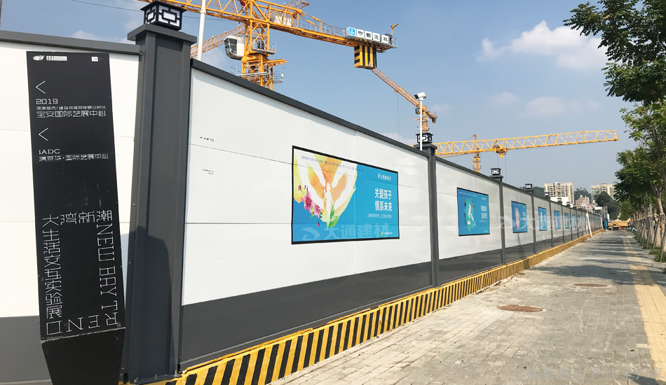 深圳市大通建材烤漆鋼結構圍擋a款-深圳寶安藝展中心工地施工圍擋案例