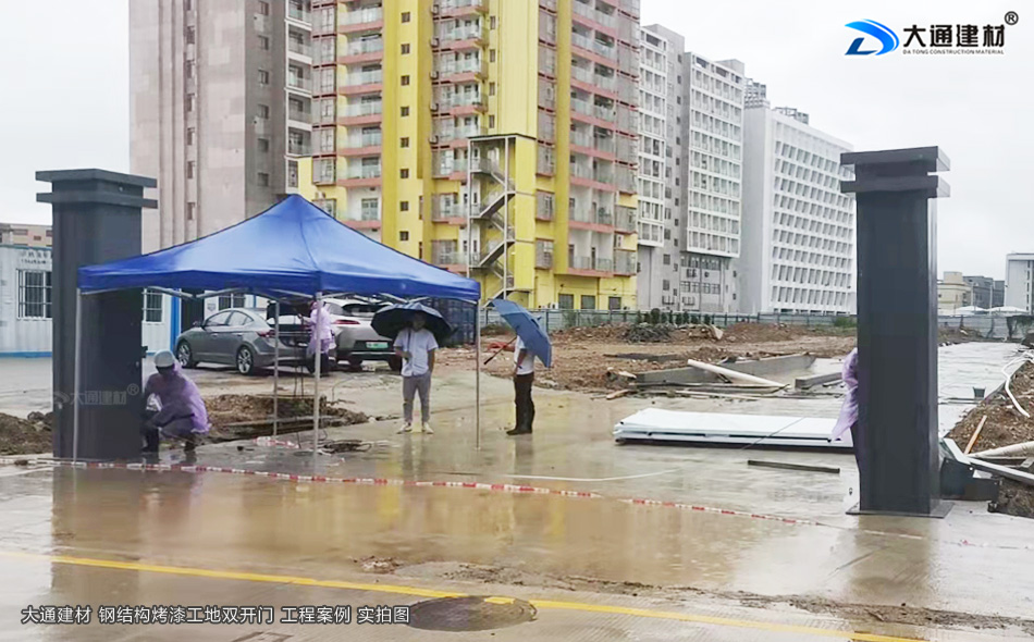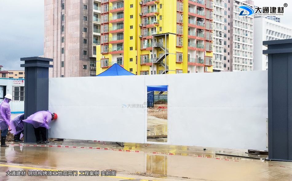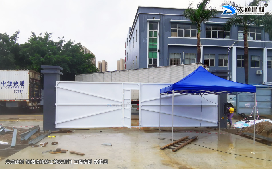 深圳龍崗小區(qū)改造項(xiàng)目工程應(yīng)用大通建材生產(chǎn)銷售的烤漆鋼結(jié)構(gòu)款工地雙開(kāi)門(mén)