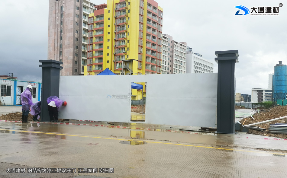 大通建材烤漆鋼結(jié)構(gòu)款工地雙開(kāi)門(mén)-先安裝大門(mén)立柱