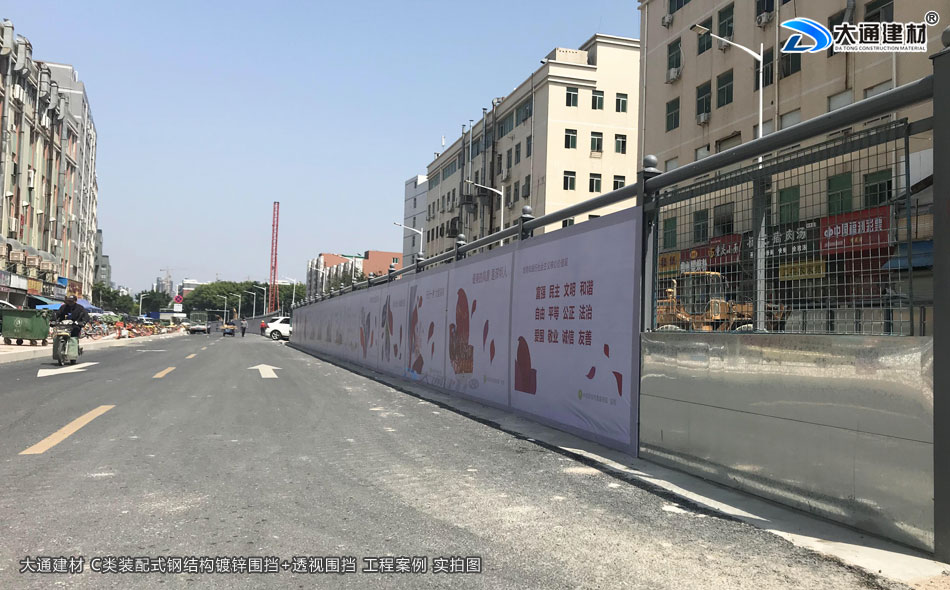 大通建材生產批發的 半通透式圍擋+C類鋼結構鍍鋅圍擋應用于深圳項目工程工地中