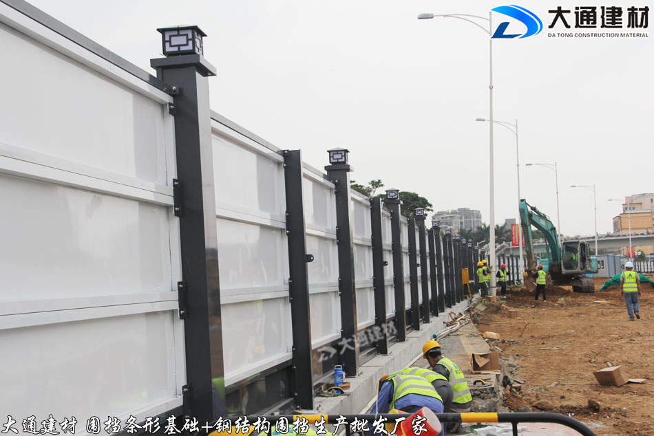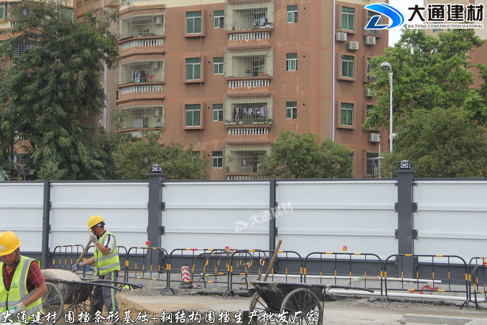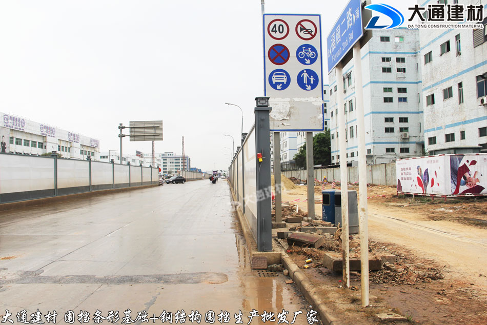 深圳市大通建材有限公司為東莞石龍鎮(zhèn)市政道路施工工程提供圍擋條形基礎+鋼圍擋 批發(fā) 送貨安裝等服務