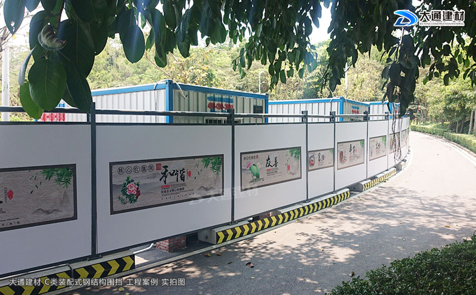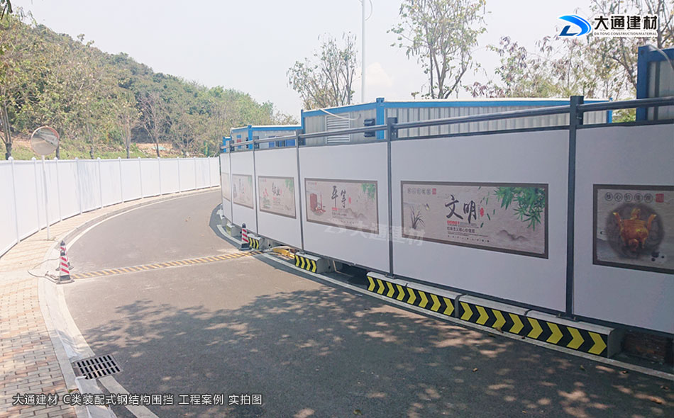 深圳市大通建材圍擋C款符合深圳市政新標(biāo)準(zhǔn),是一款裝配式圍擋,采用鋼結(jié)構(gòu)設(shè)計,由鍍鋅墻板、立柱、上下橫梁等配件組成,拆裝方便、美觀環(huán)保、安全穩(wěn)固,適合深圳市政道路、房地產(chǎn)建設(shè)、小區(qū)改造施工等工程使用。