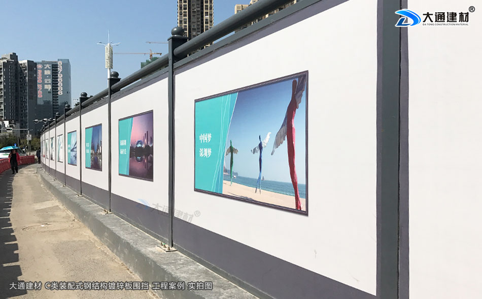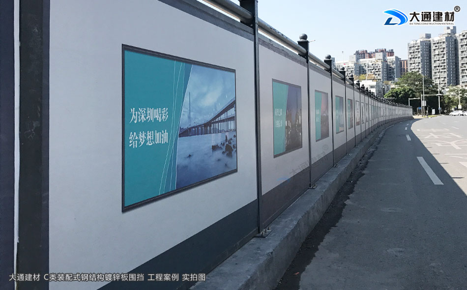 深圳市大通建材深圳標(biāo)準(zhǔn)圍擋鍍鋅板C款是一款新型的裝配式鋼結(jié)構(gòu)圍擋,符合市政新標(biāo)準(zhǔn)、拆裝方便、結(jié)構(gòu)牢固、抗風(fēng)力達(dá)到10級(jí)、安全性高,圍擋生產(chǎn)源頭廠家直接銷售、價(jià)格更便宜。