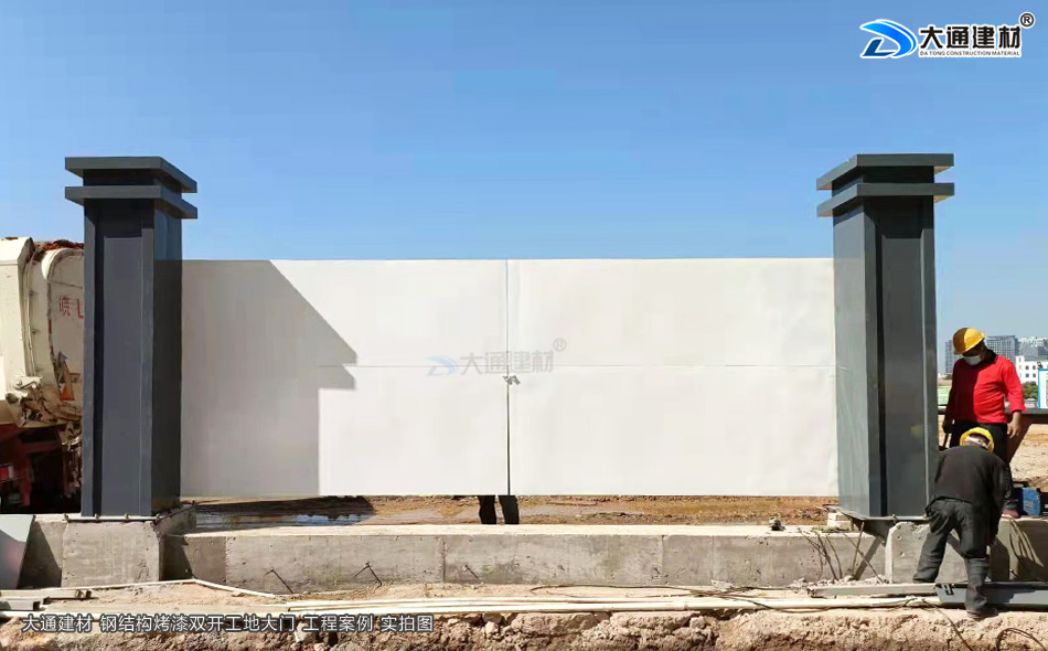 大通圍擋為您解答關于“項目施工現場新款烤漆工地大門安裝現場解析”相關問題?