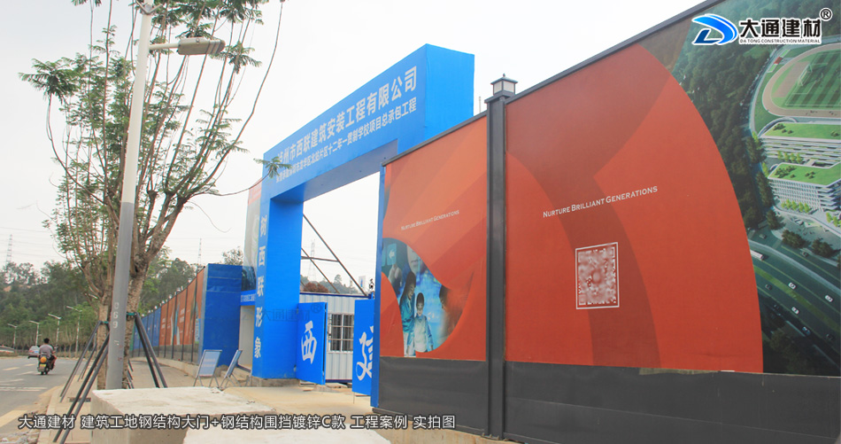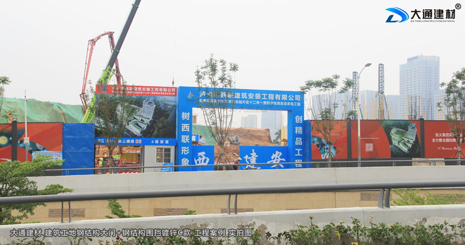 瀘州市西聯(lián)建筑安裝工程有限公司在深圳市龍華區(qū)北站片區(qū)學(xué)校項目工程,選用了深圳市大通建材生產(chǎn)的鋼結(jié)構(gòu)工地大門為項目部大門。