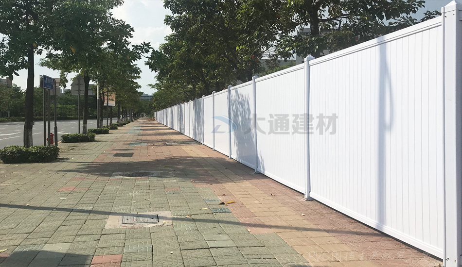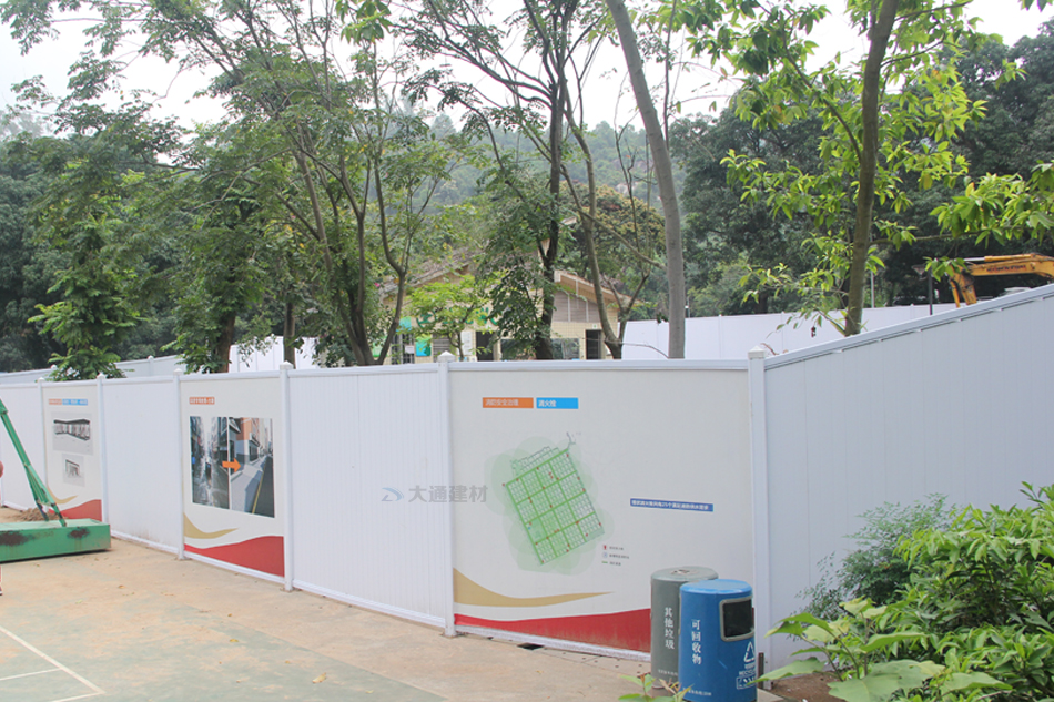 深圳市大通建材PVC圍擋在符合市政要求的同時(shí)不僅有良好的防護(hù)能力,還美觀環(huán)保、安全穩(wěn)固、經(jīng)久耐用。在使用中有較好的防護(hù)能力,而且排水不良會(huì)降低其使用壽命,可以反復(fù)循環(huán)使用。
