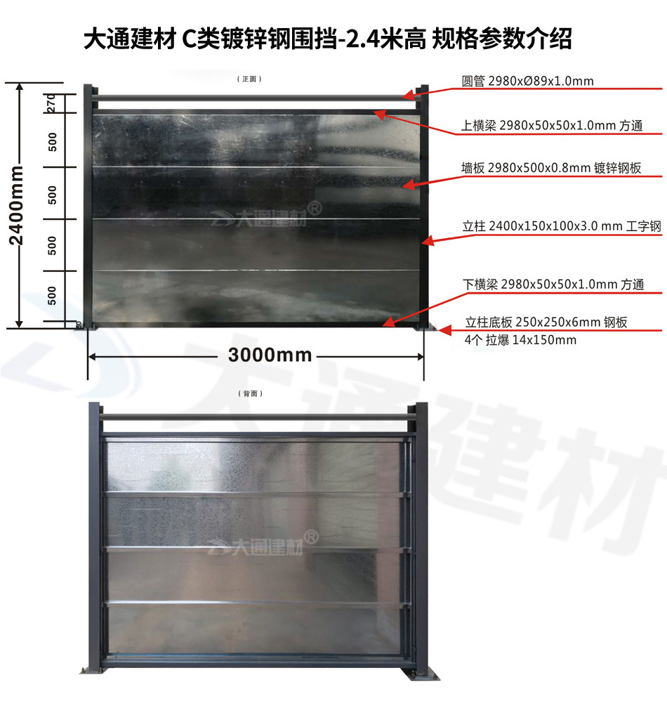 大通建材專業生產批發C類裝配式鋼圍擋-鍍鋅板款 有現貨 由廠家直接銷售 價格便宜 下單即可安裝送貨安裝 也可根據客戶需求進行定制化生產