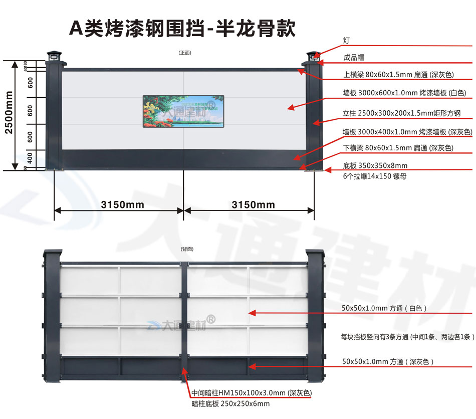 大通建材A類鋼結構烤漆圍擋半/無龍骨款適用于市政建設施工、房地產項目施工、地鐵項目施工、管網改造、小區改造、城市建設、道路施工等工程使用