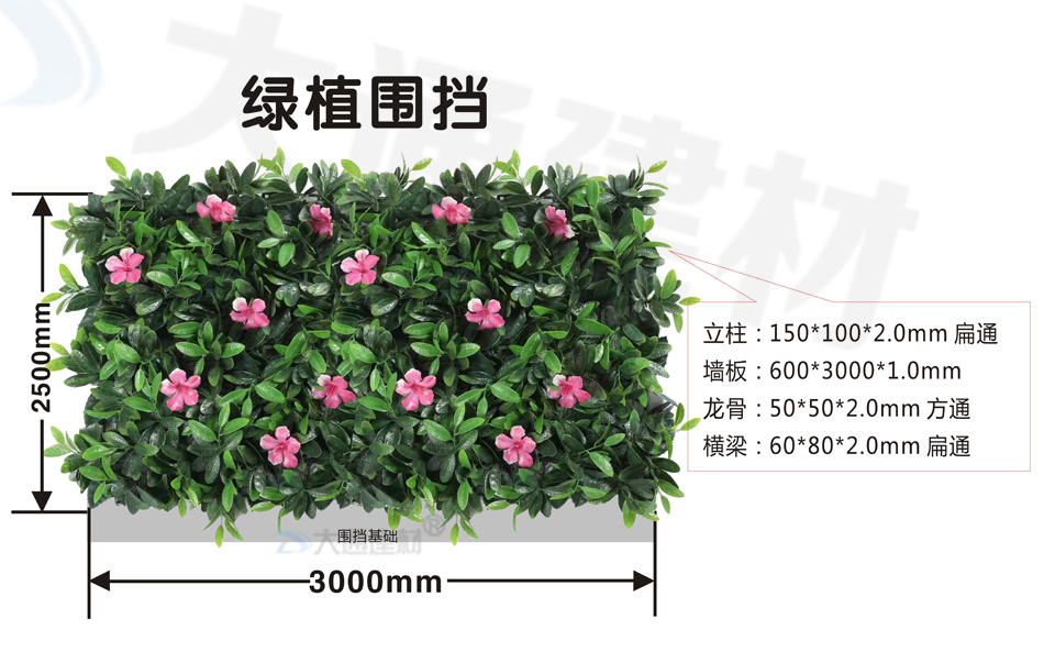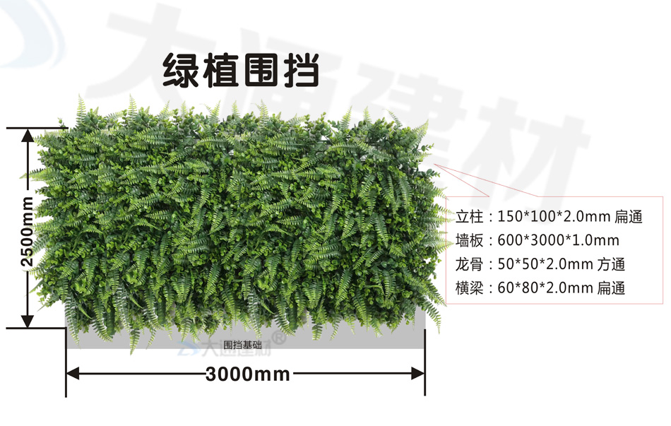 深圳大通建材綠植圍擋采用高品質、防紫外線、抗老化、環保材質制作而成,各種綠植合理搭配,構成一副讓人流連的自然風景畫。